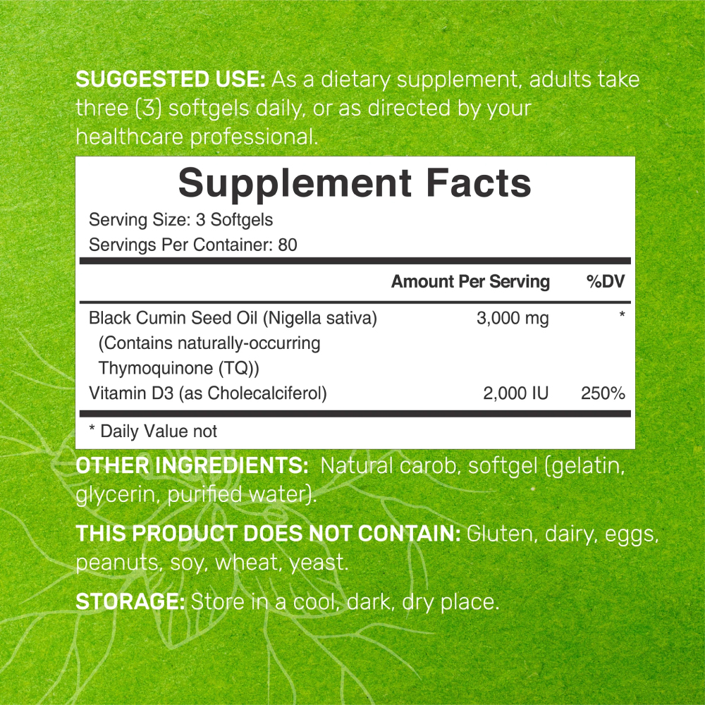 1000mg cold-pressed Nigella Sativa oil per softgel