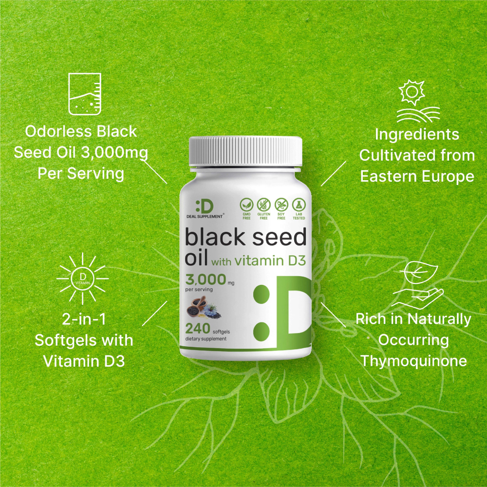 Deal Supplement Black Seed Oil 1000mg – 240 Softgels