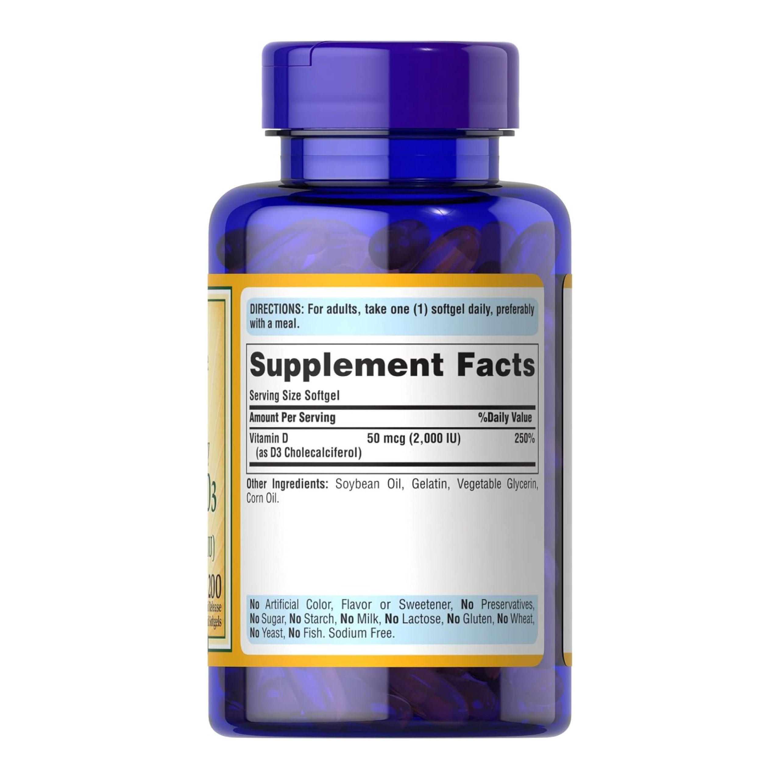 Puritan’s Pride Vitamin D3 – 50mcg (2,000 IU) – 200 Softgels