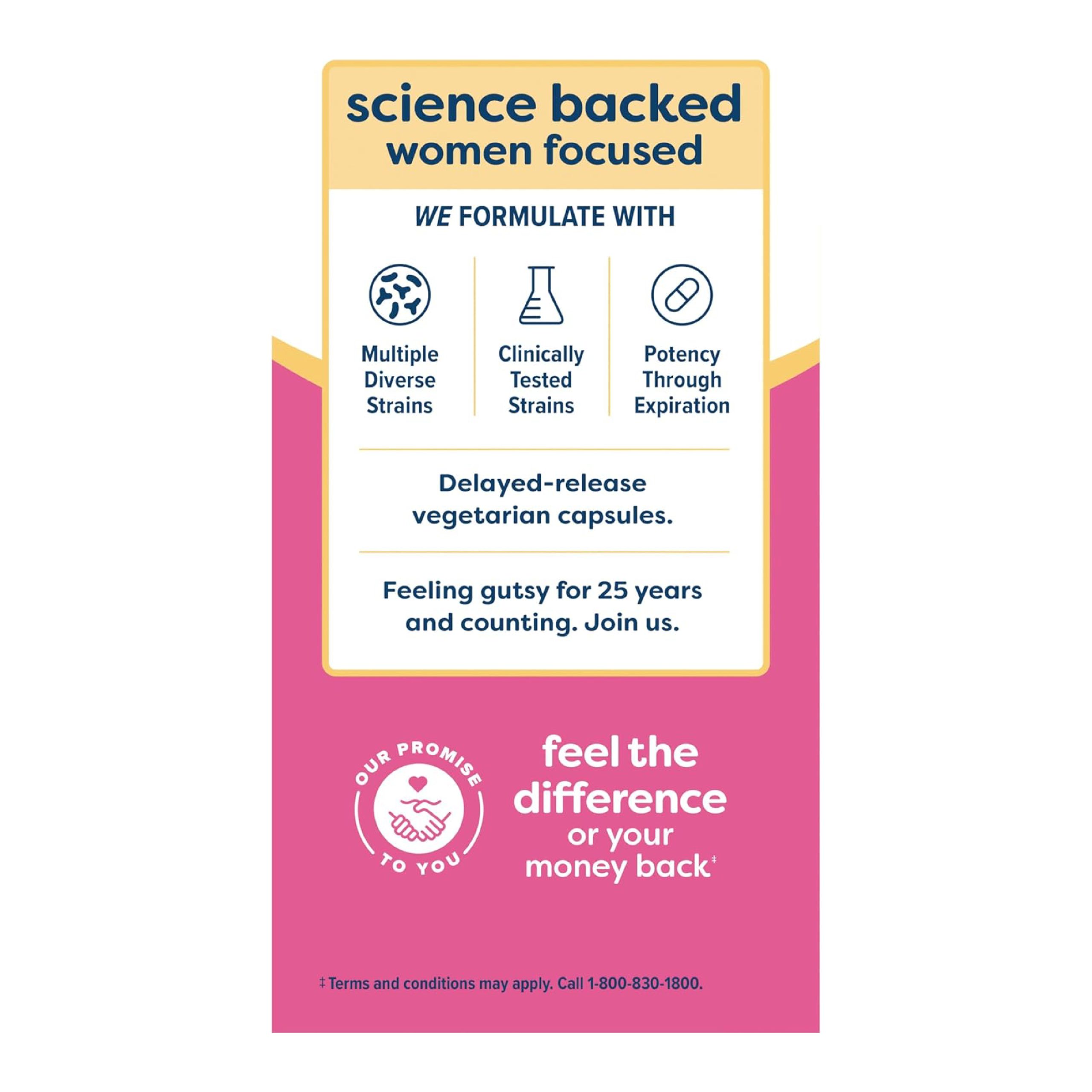 Delayed-release vegetarian capsules to help ensure delivery of live cultures.